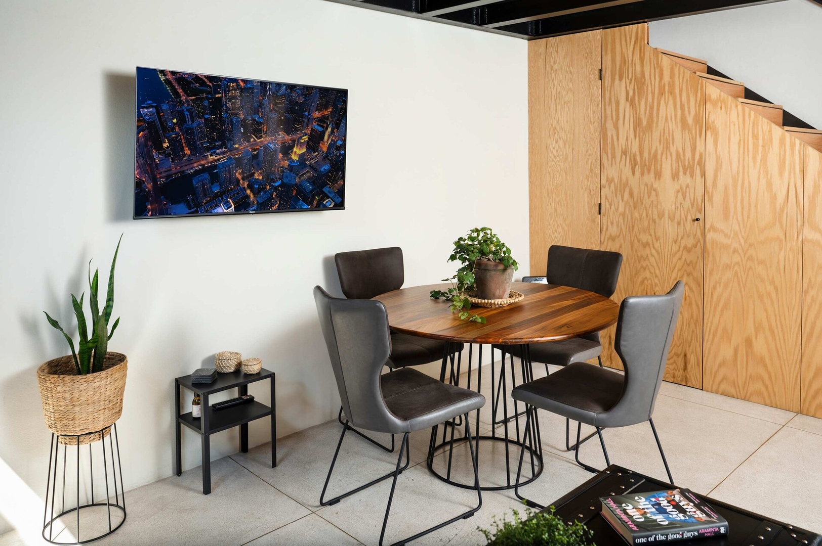 Welcome to our sophisticated loft, a perfect blend of history and modern luxury. Upstairs, the master bedroom is furnished with a king-size bed, a bathroom, and a closet. Adjacent to the bedroom, you'll find a dedicated workspace equipped with high-speed internet for those who need to stay connected.